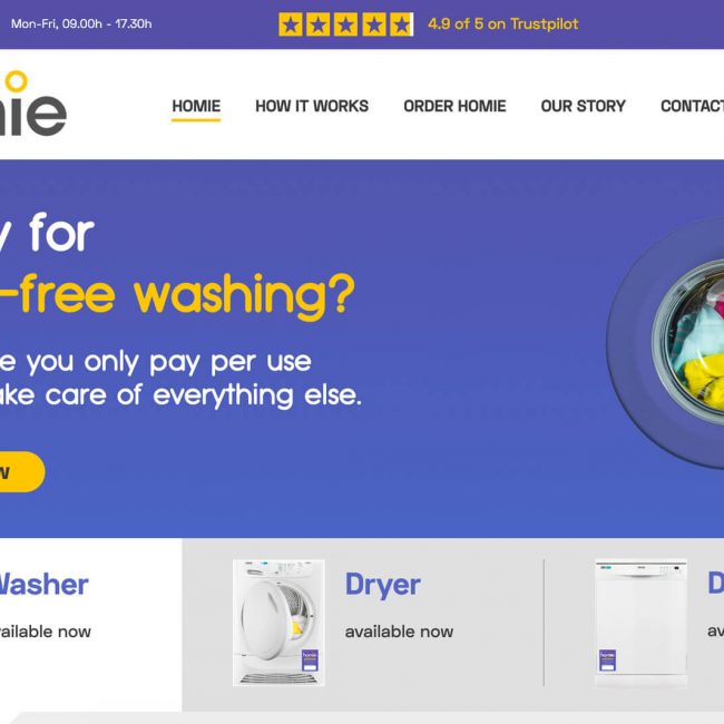 Voor Homie Pay Per Use hebben we de complete bouw op ons mogen nemen. Dankzij een aantal custom features hebben we iets moois neergezet.